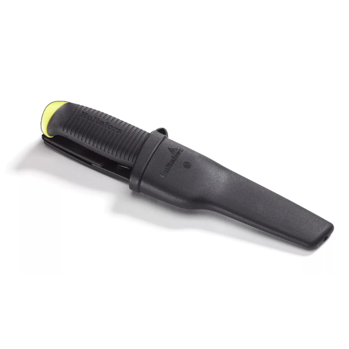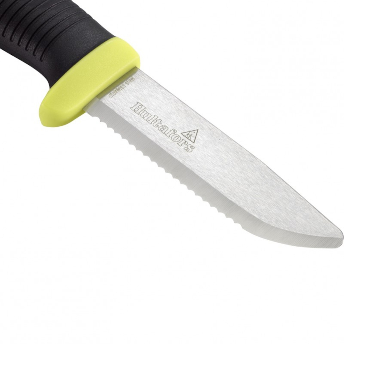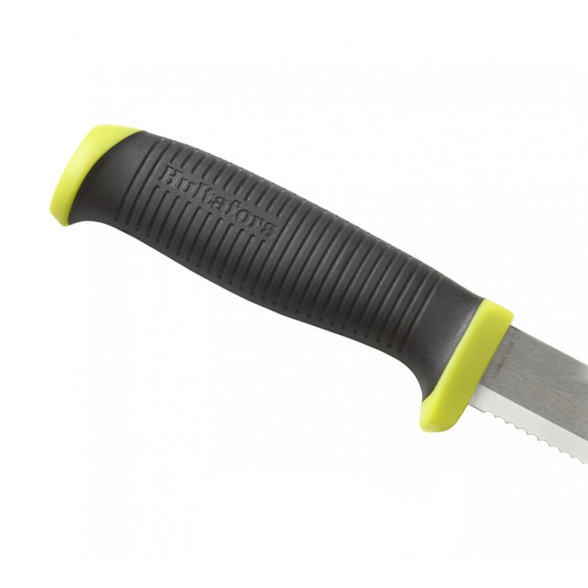 The Hultafors Rescue Knife with friction grip and serrated blade. This knife is optimised for cutting through hard or tough surfaces as well as ropes and strapping. It is designed with a blunt tip to minimise accidental injuries.
